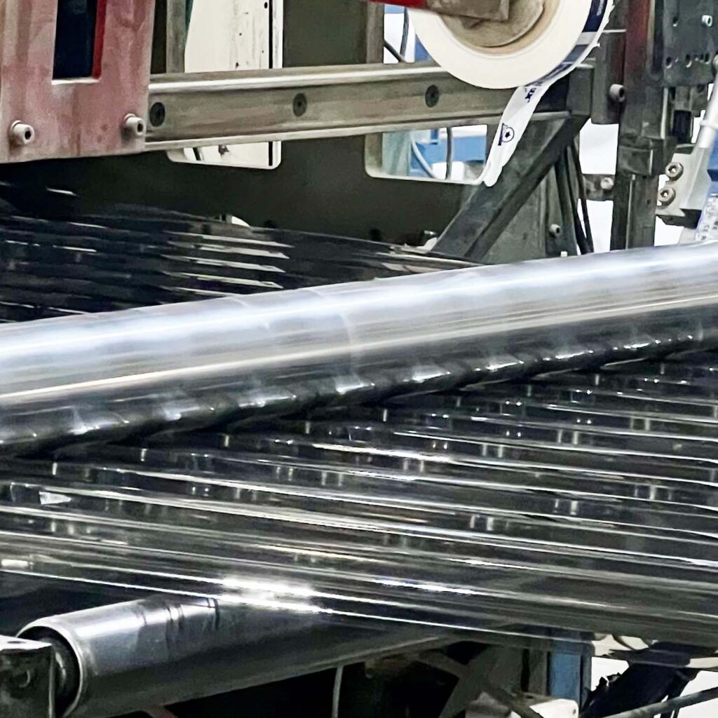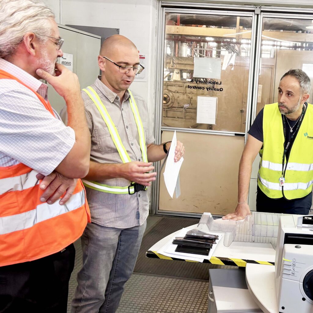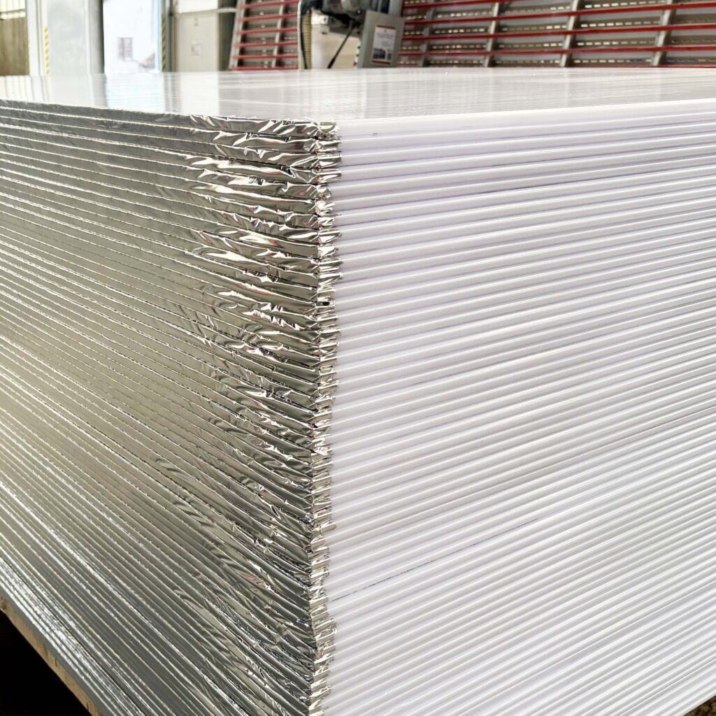 工場内では、出荷前の中空ポリカパネルを前にスタッフの方から丁寧な品質管理の説明を受け、誠実なものづくりの姿勢を間近に体感。